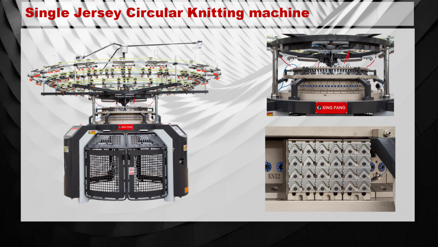 The frame of the machine combines the knitting principle with human engineering, which makes the machine firm and pretty. High quality cast iron is employed for natural aging process, which prevents parts from deforming and provides better quality.