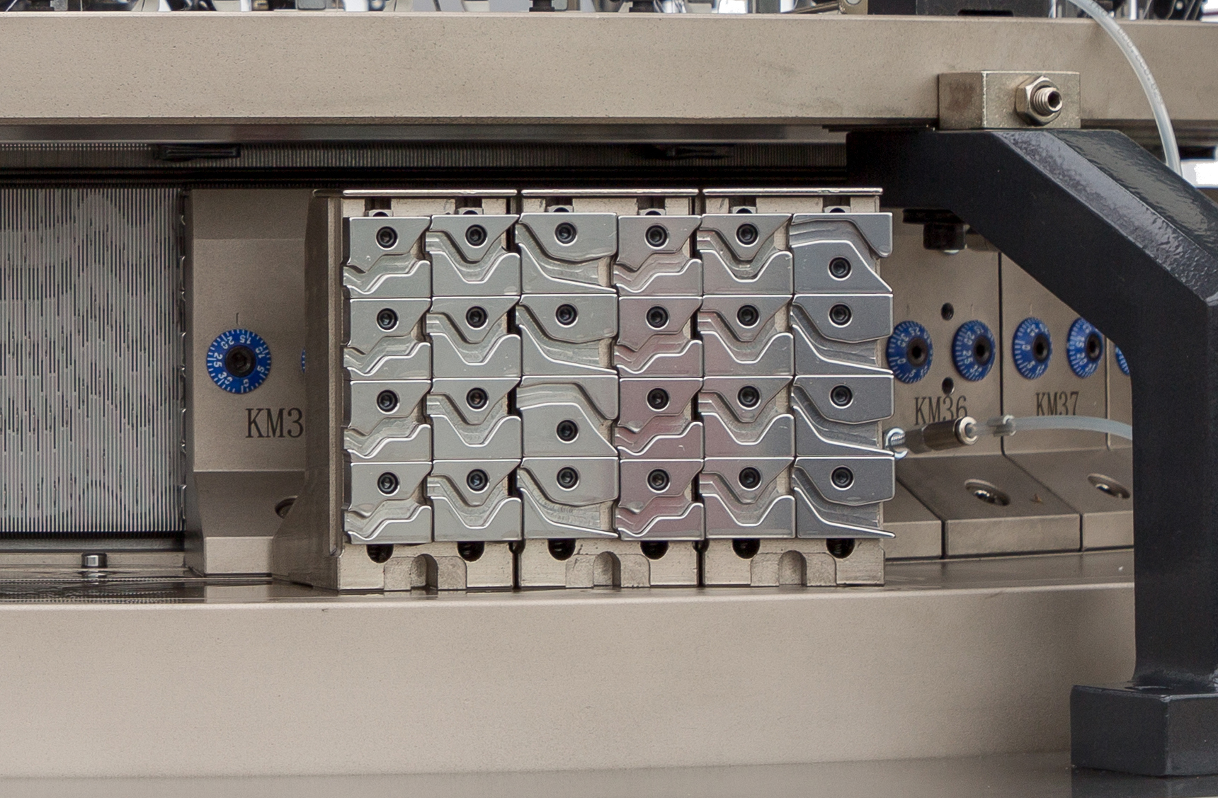The heart knitting system: The material of the cam is made through a special imported heat treatment process. The accessories of the heart adopt the precise positioning by CAD /CAM to ensure that the needle track is smooth enough to adapt various material and textile technologies.