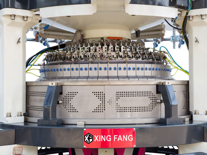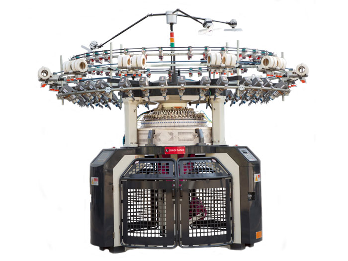 採用电脑选针器在针筒上进行成圈、集圈和浮线二功位或三功位选针,可以编织花型范围不受限制的各种提花物。任何複杂组织结构织物的工艺图案均可通过电脑花型准备系统转换成专门的控制指令。这些指令控制针织机上的电脑选针器编织大提花织物。