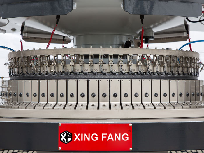 双针筒除尘系统:上针盘与下针筒均设计有除尘风扇,清除棉絮飞花更彻底,有效避免了因棉絮飞花而断针,提升布面品质。